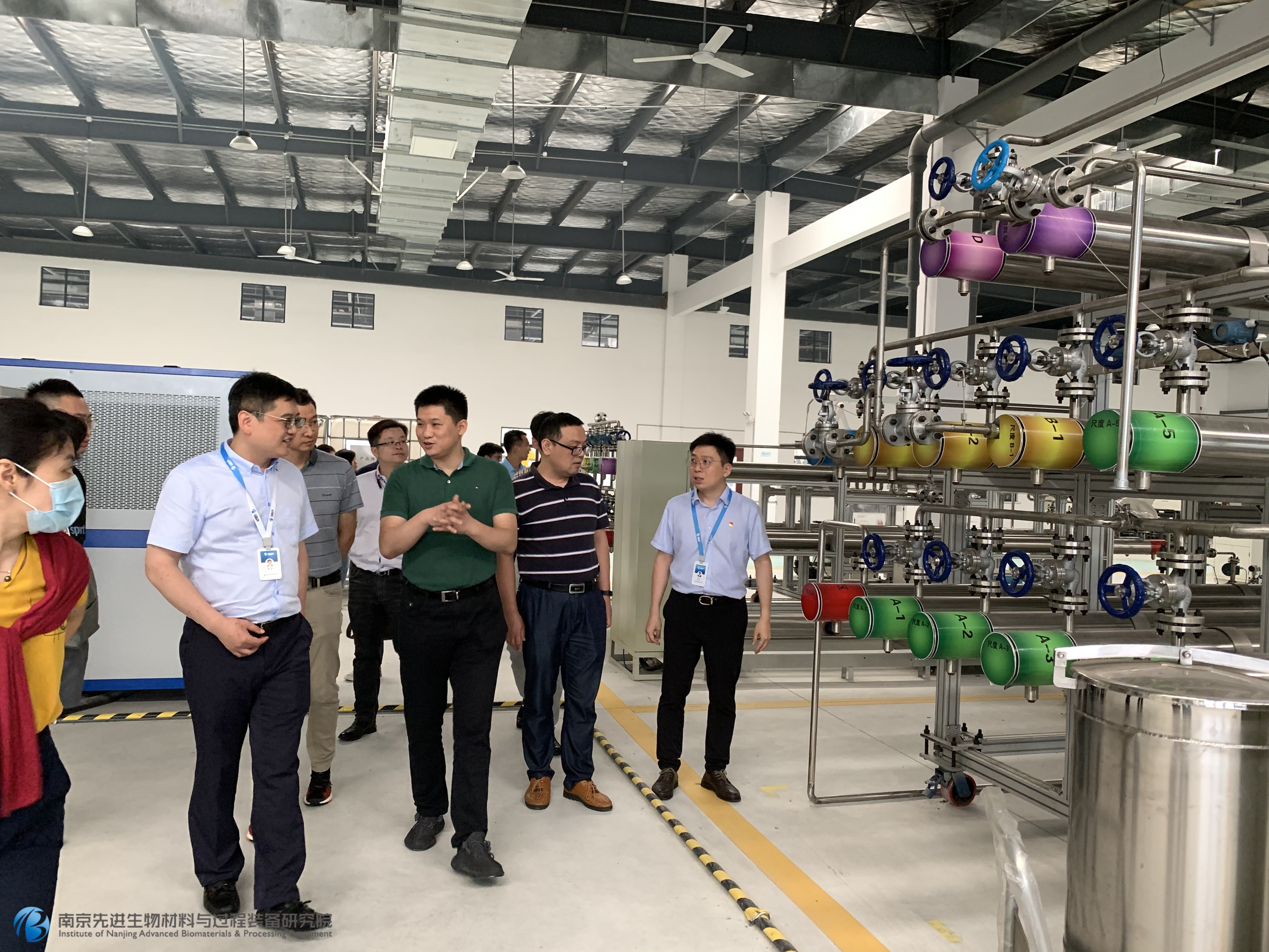 隨后,來賓們來到我院裝備中試車間和工藝、分析實驗室,郭院長就各類微流場反應設備的構(gòu)造、特點和應用場景給在場來賓進行了講解交流。