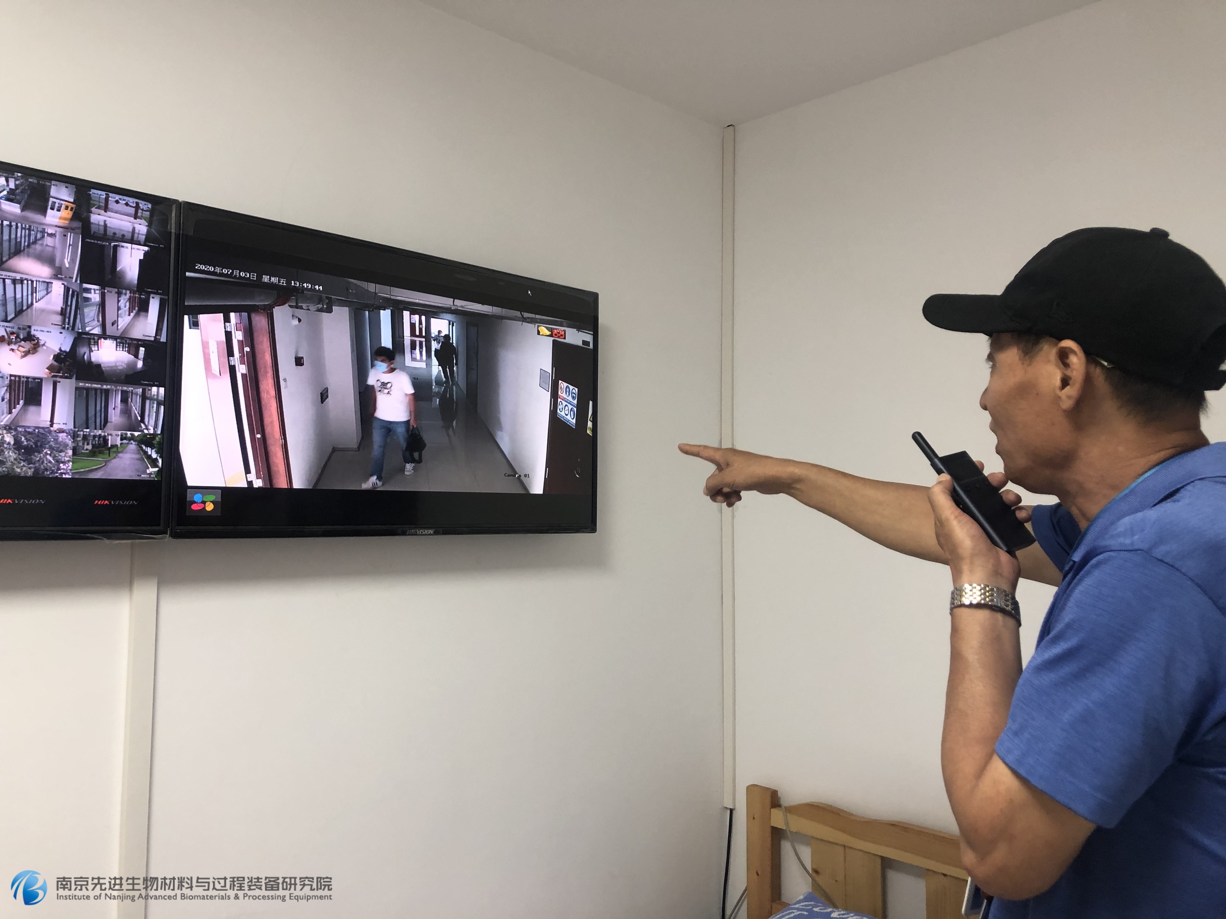 安保人員靳忠堂在監(jiān)控中發(fā)現(xiàn)歹徒翻墻進(jìn)入我院內(nèi)部,隨后聯(lián)系安全員李亞軍,并報(bào)告我院應(yīng)急小組總指揮沈磊,并及時(shí)報(bào)警。