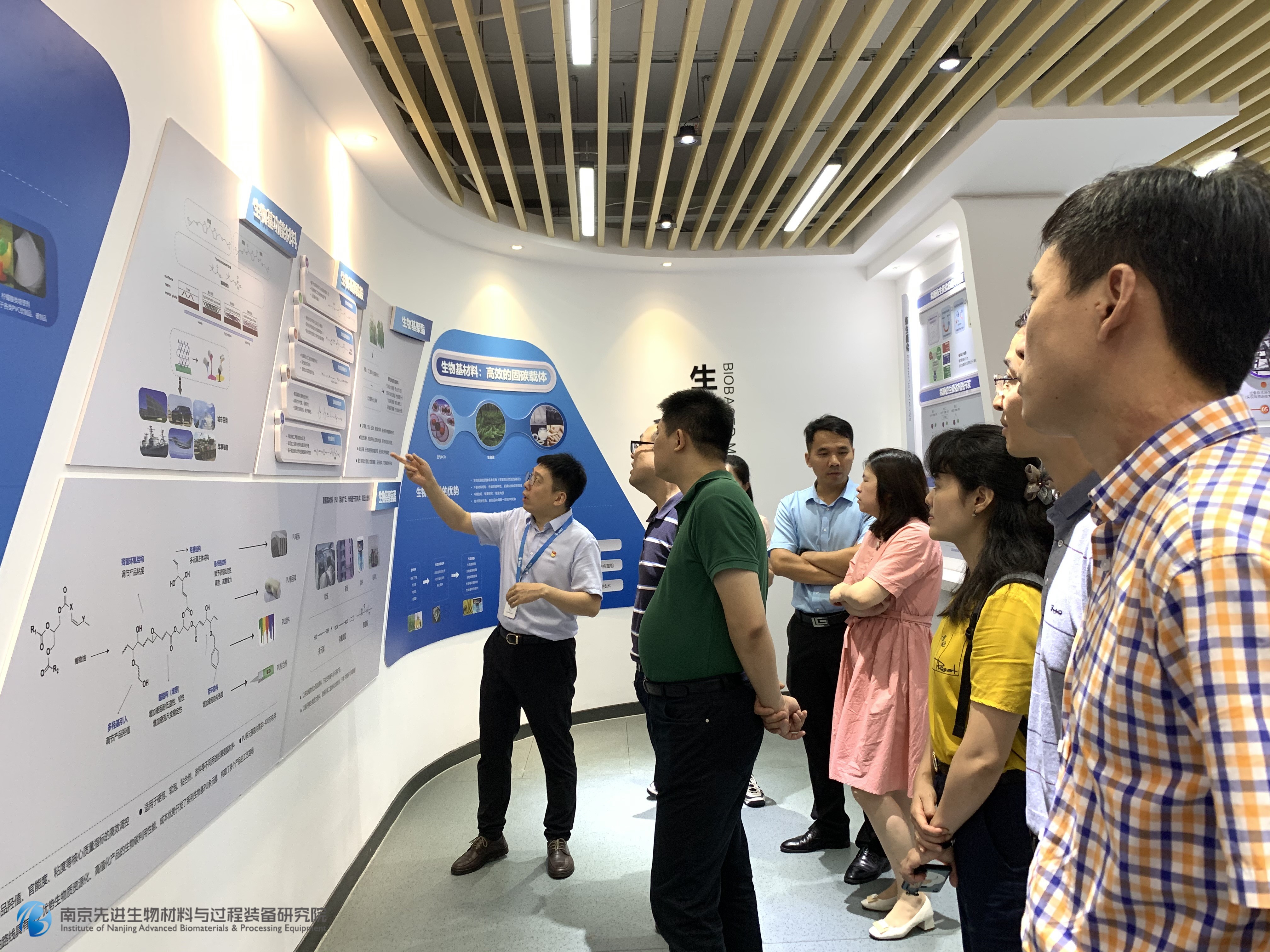 來賓們先來到展廳,季書記介紹了我院在微流場技術工藝開發(fā)與配套工程裝備研制以及生物基材料開發(fā)等方面的創(chuàng)新研發(fā)工作。來賓們就一些感興趣的問題與季書記展開交流。