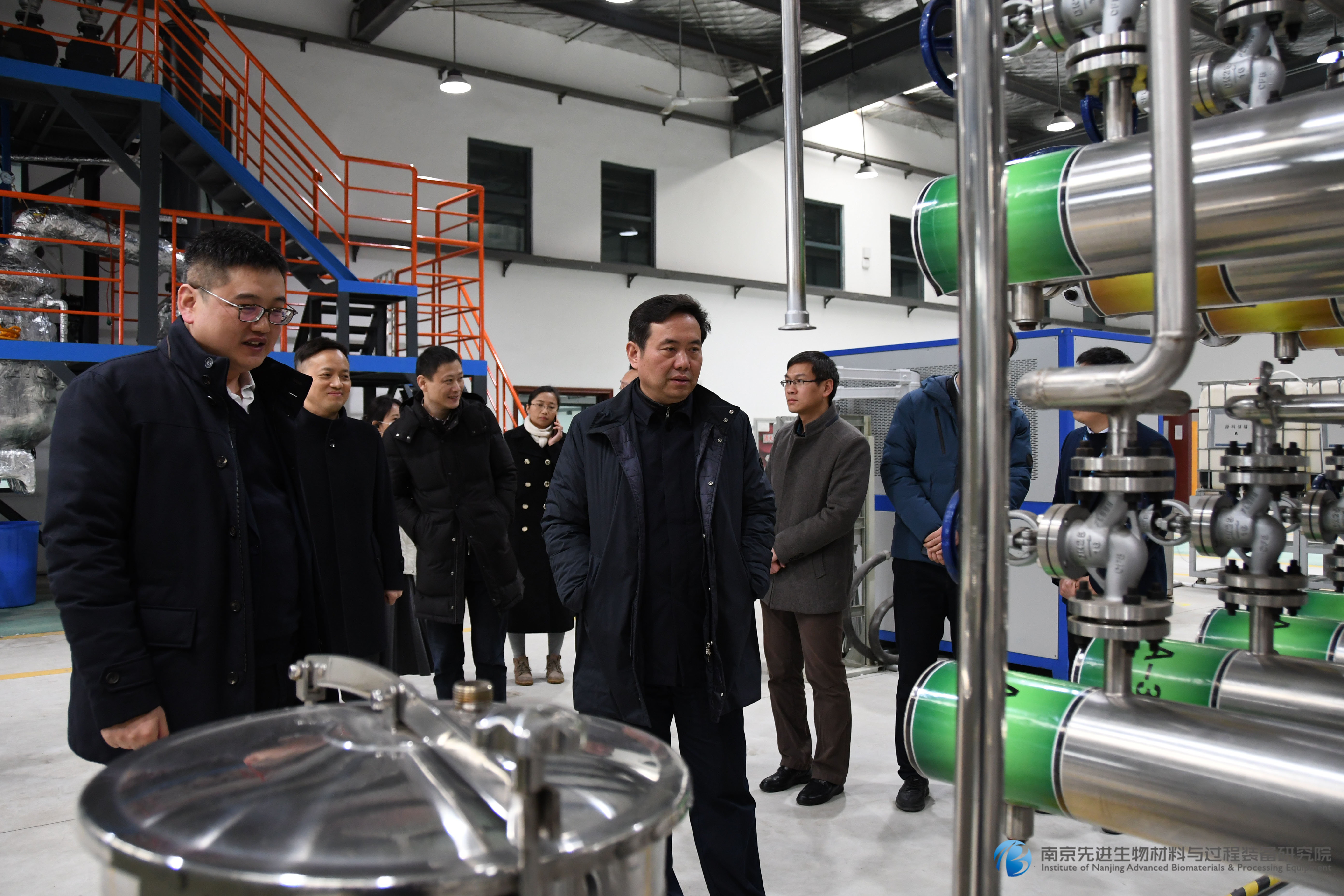 揭牌儀式結(jié)束后,郭凱院長邀請一行領(lǐng)導(dǎo)參觀了IBP研究院。在展廳,郭院長介紹了我院在微流場技術(shù)工藝開發(fā)與配套工程裝備研制以及生物基材料開發(fā)等方面的創(chuàng)新研發(fā)工作;在裝備中試車間,郭院長就各類微流場反應(yīng)設(shè)備的構(gòu)造、特點和應(yīng)用場景與在場領(lǐng)導(dǎo)進行了講解交流。